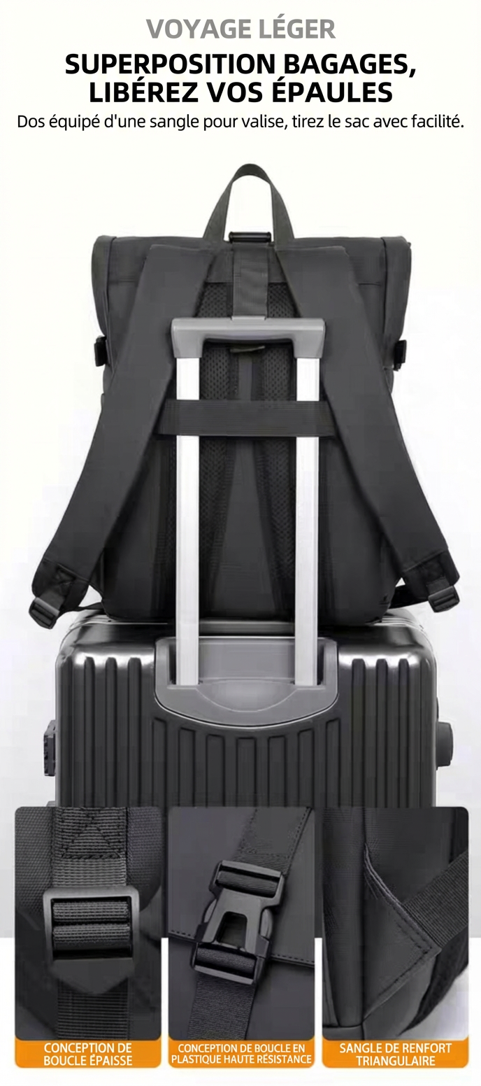 Un sac à dos de grande contenance, imperméable, parfait pour les déplacements et les voyages, une sacoche portable polyvalente adaptée aussi bien aux besoins professionnels qu'aux moments de détente, et spécialement conçue pour transporter un ordinateur portable d'une taille comprise entre 14 et 15,6 pouces en toute sécurité.